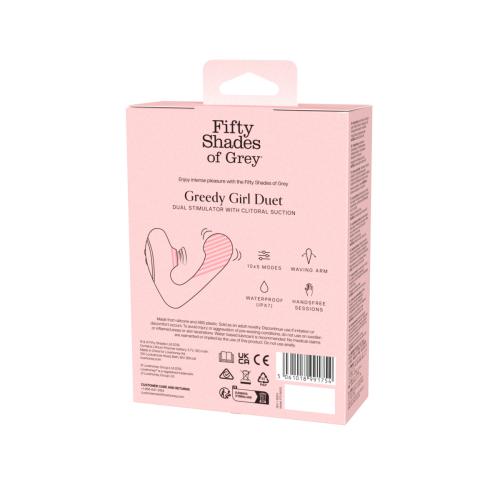 Ontdek een intense en veelzijdige beleving met de Greedy Girl Duet Stimulator van Fifthy Shades Of Grey. Deze luxe sekstoy combineert interne stimulatie met verfijnde clitorale stimulatie, waardoor je lichaam op meerdere manieren wordt geprikkeld. De slimme vormgeving sluit natuurlijk aan op het lichaam en nodigt uit tot ontspannen en ontdekken, zowel solo als samen.